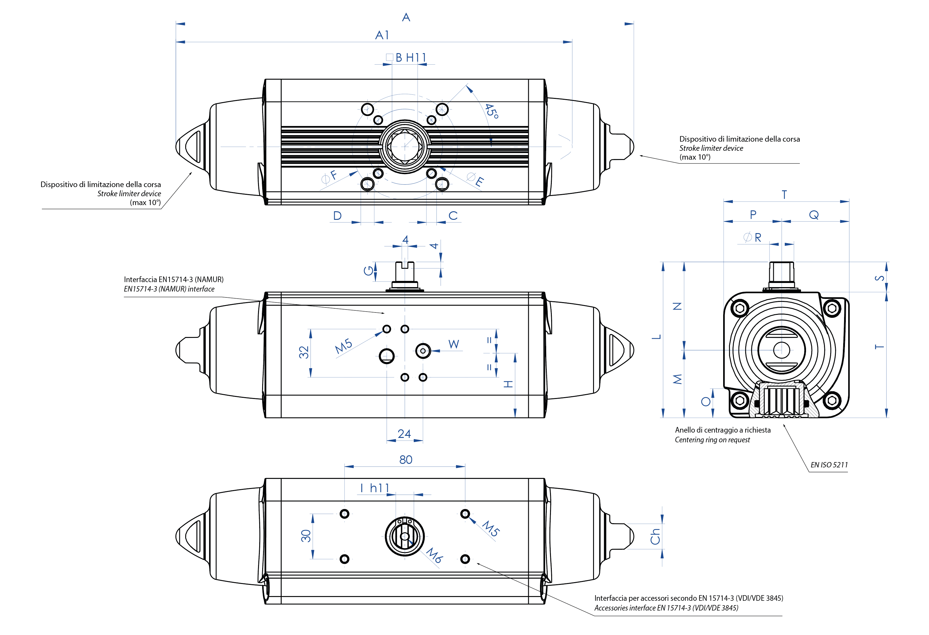 RP - 齿轮齿条式气动执行器 铝制执行器 带有集成手动操作的执行器 CF8M不锈钢精密铸造执行器 316锻造执行器 A105碳钢执行器 铝气动定量执行器 HEAVY DUTY的碳钢执行器 根据要求提供特殊版本 技术特色 下载 销售条款 宏 DA 和 SR 气动执行器 小类 铝制执行器 申请详细信息 打印页面 下载目录 ALUMINIUM PNEUMATIC ACTUATORS 下载表 优点 特性 特性 规格 accessori 文档 GS15-GS960 GS2880-GS8000 1.自润滑的密封滑动轴承降低活塞与缸筒之间的摩擦力;即便长期停用,亦可避免密封件与缸筒发生粘连。2.缸筒、套管和传动轴的硬度超过50 HRC更强的执行器内部抗力3.缸筒和活塞之间的滚动摩擦更小的摩擦力4.滚动摩擦的十字滑块(通过活塞和无传动装置的轴,将线性运动转换为旋转运动)。活塞和传动轴之间的摩擦力更小,从而减少零部件磨损打开和关闭时有着更强的起动扭矩相较于齿轮和齿条式执行器,其尺寸更小,安装空间需求更低相较于齿轮和齿条式执行器,其重量更小(-30% Kg/Nm),建造基础设施时可降低成本相较于齿轮和齿条式执行器,其耗气量更低,(双效:-40% 空气 cm³/Nm;单效:-20% 空气 cm³/Nm),能够有效降低压缩机的工作负荷,或直接使用小尺寸压缩机。5.滑动缸筒得益于较低的表面粗糙度,可以降低轴承的磨耗。6.Stainless steel shaftHigher corrosion resistance自GD15型号起接埠NAMUR电磁阀的接口无需安装额外基座在ACTUATECH自有设施内完成全部生产流程对加工各个阶段的最佳管控ATEX认证可安装于潜在易爆的环境内最高达SIL3等级的认证更高的运行安全等级 技术参数扭矩介于15Nm~4000Nm之间法兰接口标准:EN ISO 5211F03 - F04 - F05 - F07 - F10 - F12 - F14 - F16 - F25符合15714-3标准旋转角度:92°(-1°,+91°)起动扭矩:返回时的起动扭矩仅取决于弹簧的运动,与供应压力无关。弹簧调教共有4种不同类型;具体请参见表格弹簧顺时针旋转时,实现自动关闭标准型GS执行器的代码中包含5.6Bar时起动扭矩(Nm)下的动力切割(6=5.6Bar)ATEX认证型号符合欧盟《2014/34/UE》运行条件温度: -20℃~+80℃ (特殊型号:高温=-20℃~+150℃;低温=-50℃~+60℃)额定压力:5.6bar;最高作业压力:8.4bar流体源:无需润滑且经过滤的压缩空气需要润滑时,请使用与NBR材质相兼容的油料。 GS15 - GS960 GS1440 GS1920 GS2880 GS4000 GS15(Nm)至GS960(Nm)的单效气动执行器 技术参数表 GS15(Nm)至GS53(Nm)代码GS0015401SGS0015402SGS0030401SGS0030402SGS0053401S密封件KGGI0014KGGI0016KGGI0060尺寸GS15GS30GS53ISOF03/F05F04F04F05/F07F05/F07A233,3233,3259259304,3A1 (2,8 Bar)203,8203,8228,5228,5270,7B1111141417C x depthM5x8M5x8M5x8M6x9M6x9D x depthM6x9--M8x12M8x12E3642425050F50--7070G1010131313H30,330,335,735,742,8I99101012L79,279,290,490,4103,3M31,531,537,737,744,8N47,747,752,752,758,5O13,213,216,516,519,3P27,727,732,732,738,5Q31,531,537,737,744,8R10,910,914,514,516,2S2020202020T59,259,270,470,483,3W (气体)1/8"1/8"1/8"1/8"1/8"Ch1313131317重量(Kg)1,21,21,951,953供气量 (dm3/cycle)0,090,090,170,170,3H = 固定板中心 技术参数表 GS60(Nm)至GS360(Nm)代码GS0060401SGS0090401SGS0120401SGS0180401SGS0240401SGS0360401S密封备件KGGI0018KGGI0019KGGI0020KGGI0021KGGI0022KGGI0023尺寸GS60GS90GS120GS180GS240GS360ISOF05/F07F07/F10F07/F10F07/F10F10/F12F10/F12A338,5393,7409,6474520,5613A1 (2,8 Bar)309,1341,8361,6406,6454,1523B172222222727C x depthM6x9M8x12M8x12M8x12M10x15M10x15D x depthM8x12M10x15M10x15M10x15M12x18M12x18E50707070102102F70102102102125125G131617191919,5H44,854,558,16057,461,5I121515191922L107137,5141,1148164,9178M46,856,560,16272,978,5N60,28181869299,5O19,324,824,824,329,529,5P40,25151566269,5Q46,856,560,16272,978,5R1820,222,525,52931,8S203030303030T87107,5111,1118134,9148W (气体)1/8"1/8"1/8"1/8"1/4"1/4"Ch172222222727重量(Kg)3,355,96,88,911,816,5供气量 (dm3/cycle)0,330,550,811,52H = 固定板中心 技术参数表 GS480(Nm)至GS960(Nm)代码GS0480401SGS0480402SGS0720402SGS0720401SGS0960402SGS0960401S密封备件KGGI0024KGGI0025KGGI0026尺寸GS480GS720GS960ISOF10/F12F14F12F14F12/F16F14A648,2648,2798798828828A1 (2,8 Bar)563,8563,8683683714,4714,4B363636364646C x depthM10x15M16x24M12x18M16x24M12x18M16x24D x depthM12x18---M20x30-E102140125140125140F125---165-G19,519,519,519,518,518,5H787886,586,599,299,2I242427273232L198198216216237,7237,7M93,593,5101,5101,5114,7114,7N104,5104,5114,5114,5123123O38,538,538,538,548,548,5P74,574,584,584,59393Q93,593,5101,5101,5114,7114,7R36,536,541414646S303030303030T168168186186207,7207,7W (气体)1/4"1/4"1/4"1/4"1/4"1/4"Ch272736363636重量 (Kg)22,722,733334242供气量 (dm3/cycle)2,82,84,24,25,95,9H = 固定板中心 GS1440(Nm)单效气动执行器 技术参数表 GS 1440 (Nm)代码GS1440E16D8A重量 [Kg]74,0供气量 [dm3/cycle]11,0密封备件KGGI0735 GS1920(Nm)单效气动执行器 技术参数表 GS 1920 (Nm)代码GS1920E1608A重量[Kg]67,0供气量 [dm3/cycle]12,0密封备件KGGI0230 GS2880(Nm)单效气动执行器 技术参数表 GS 2880 (Nm)代码GS2880E16D8A重量 [Kg]116,8供气量 [dm3/cycle]21,0密封备件KGGI0535 GS4000(Nm)单效气动执行器 技术参数表 GS 4000 (Nm)代码GS4000E25D8A重量[Kg]183,0供气量 [dm3/cycle]29,1密封备件KGGI0540 "GS"气动执行器操作图 说明书 GD0015-GD1920 AND GS0015-GS0960 MANUAL - MAN80515 GD2880-GD8000 AND GS1440-GS4000 MANUAL - MAN80937 数据表 GS0015F03F05 GS0015F04 GS0030F04 GS0030F05F07 GS0053F05F07 GS0060F05F07 GS0090F07F10 GS0120F07F10 GS0180F07F10 GS0240F10F12 GS0360F10F12 GS0480F10F12 GS0480F14 GS0720F12 GS0720F14 GS0960F12F16 GS0960F14 GS1440F16 GS1920F16 GS1920F16 100° GS2880F16 GS4000F25 证明书 AKNOWLEDGEMENT OF RECEIPT - EC - ATEX DECLARATION OF DUST AND WATER PROTECTION DEGREE IP6X-IPX8-IPX6 SIL CERTIFICATE GS
